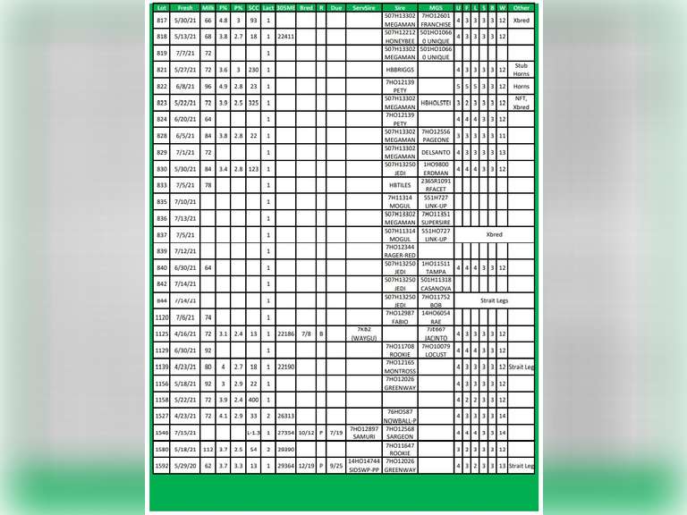 LOT 842 - Fresh 7-14 1st Lact Sire: 7H13250 JEDI (We do not have a picture, but we will ensure 100% Satisfaction or she won't go on the truck)