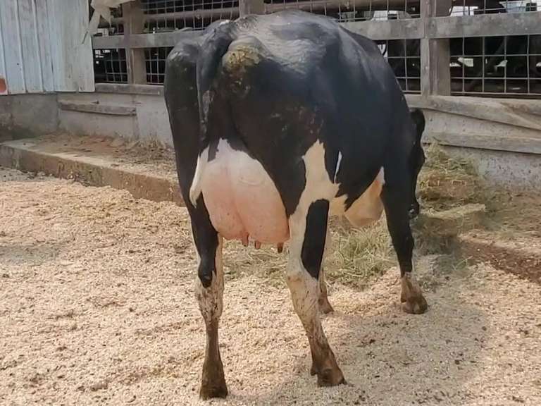 LOT 8107 - Fresh 11-30-20 Milk 90 Fat 2.52 Pro 3.34 SCC 12 Lact 1 Pregnant Due 1-7-22 { 3 3 3 4 4 14 } 3 Quartered