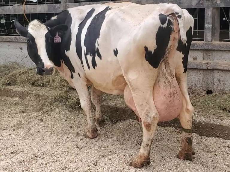 LOT 707 - Fresh 5-19 Milk 114 Fat 3.55 Pro 2.92 SCC 91 Lact 7 Exposed { 2 3 3 4 2 14 } 3 Quartered-RF