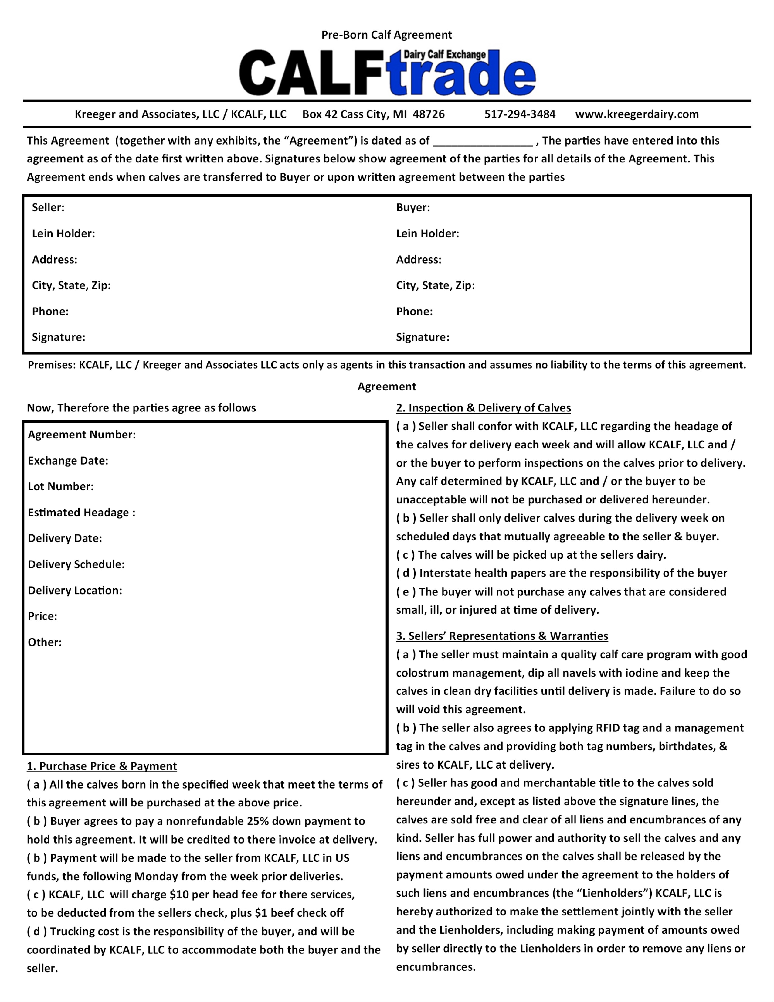 Pre-Born Agreement 4-9 Rolling Acres Dairy