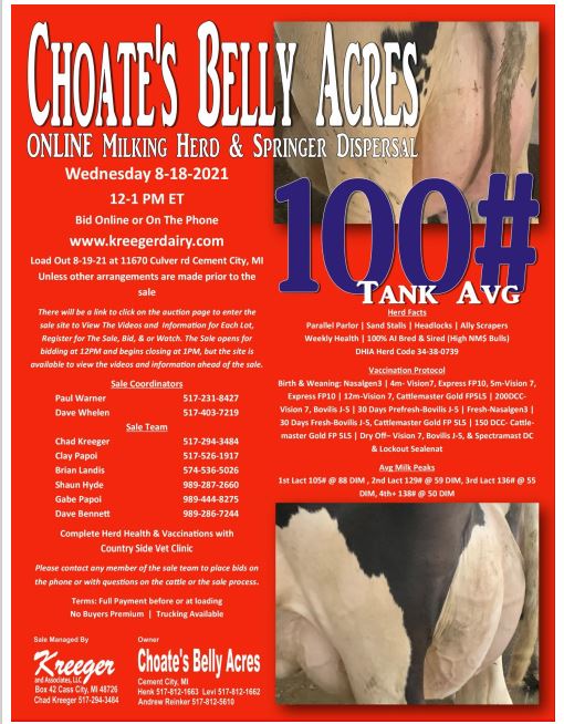 If there is an update sheet posted on www.kreegerdairy.com auction page prior to the sale. Any updates on that will take precedence over other information listed in the sale catalog and on the auction site, However the updates will be added to the auction site.