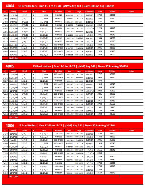 Each lot will be sorted at loading and if there is a heifer or cow that needs to be taken out we will sort her off or the buyer can come sort at loading if they want to sort there own cattle. Therefore the number in a lot or purchased may vary from the lot listed on this sale.